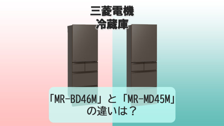 おすすめモノ 「MR-BD46M」と「MR-MD45M」の違いは?【三菱電機 冷蔵庫】 三菱電機の冷蔵庫「MR-BD46M」と「MR-MD45M」の違いをまとめました。主な違いは室内レイアウト・容量・高さにあります。 おすすめモノ家電